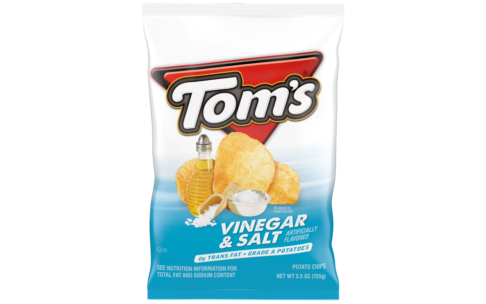 Tom’s products are widely available in grocery stores, convenience stores, vending machines, and online retailers across the United States.
