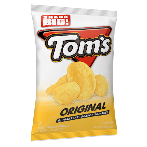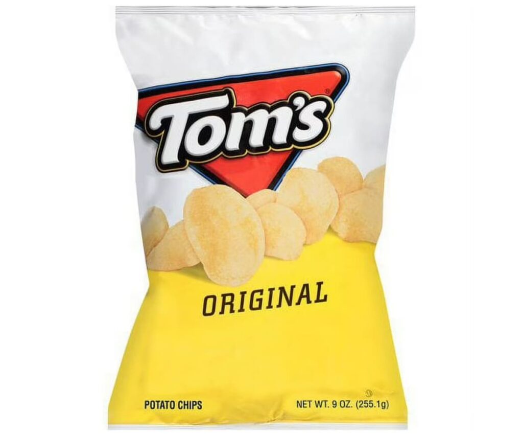 Tom’s products are widely available in grocery stores, convenience stores, vending machines, and online retailers across the United States.